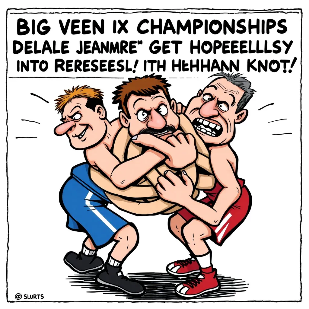 Big Ten officials announced they're bringing in a team of professional contortionists, a geometry expert from MIT, and possibly a priest to resolve the situation. The championships will resume 'whenever we figure out which wrestler is which,' according to tournament director Mike Stevens.