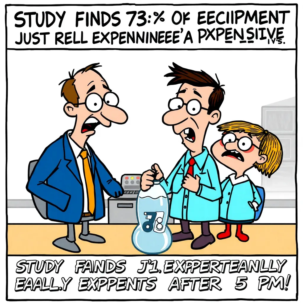 STANFORD, CA—A comprehensive five-year study conducted by the Institute for Academic Suffering has concluded that approximately 73% of laboratory equipment transforms into elaborate and costly paperweights precisely at 5:00 PM each weekday, rendering them completely useless for any scientific purpose.