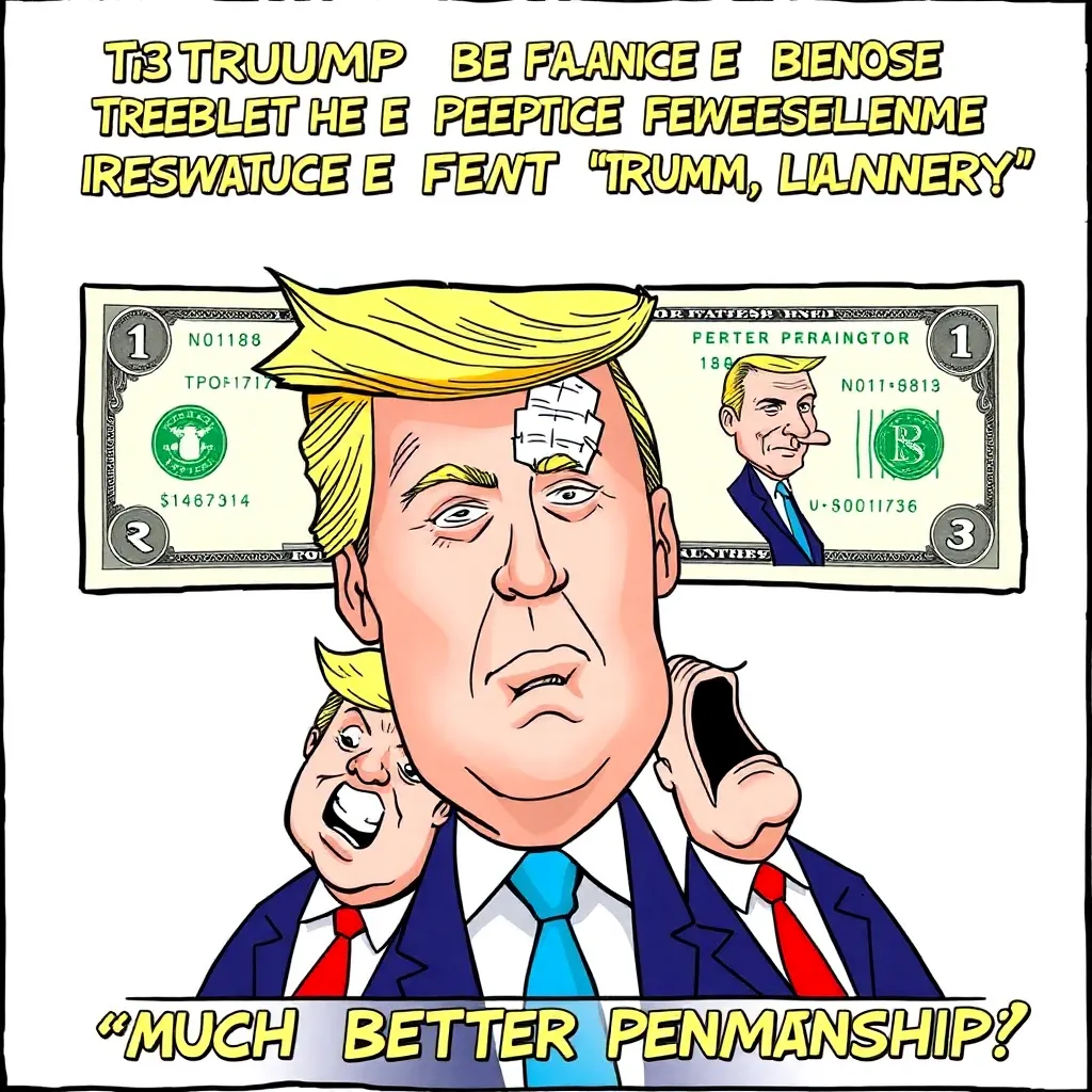 WASHINGTON — In a groundbreaking move that financial experts are calling 'absolutely bonkers,' President Donald Trump announced Tuesday that his signature will not only appear on U.S. currency but will completely dominate the visual landscape of every denomination.